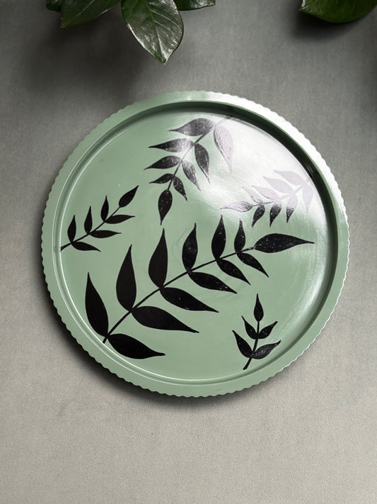 Tablett "Riffled" - Handgemaltes Blattmuster - 21cm Durchmesser