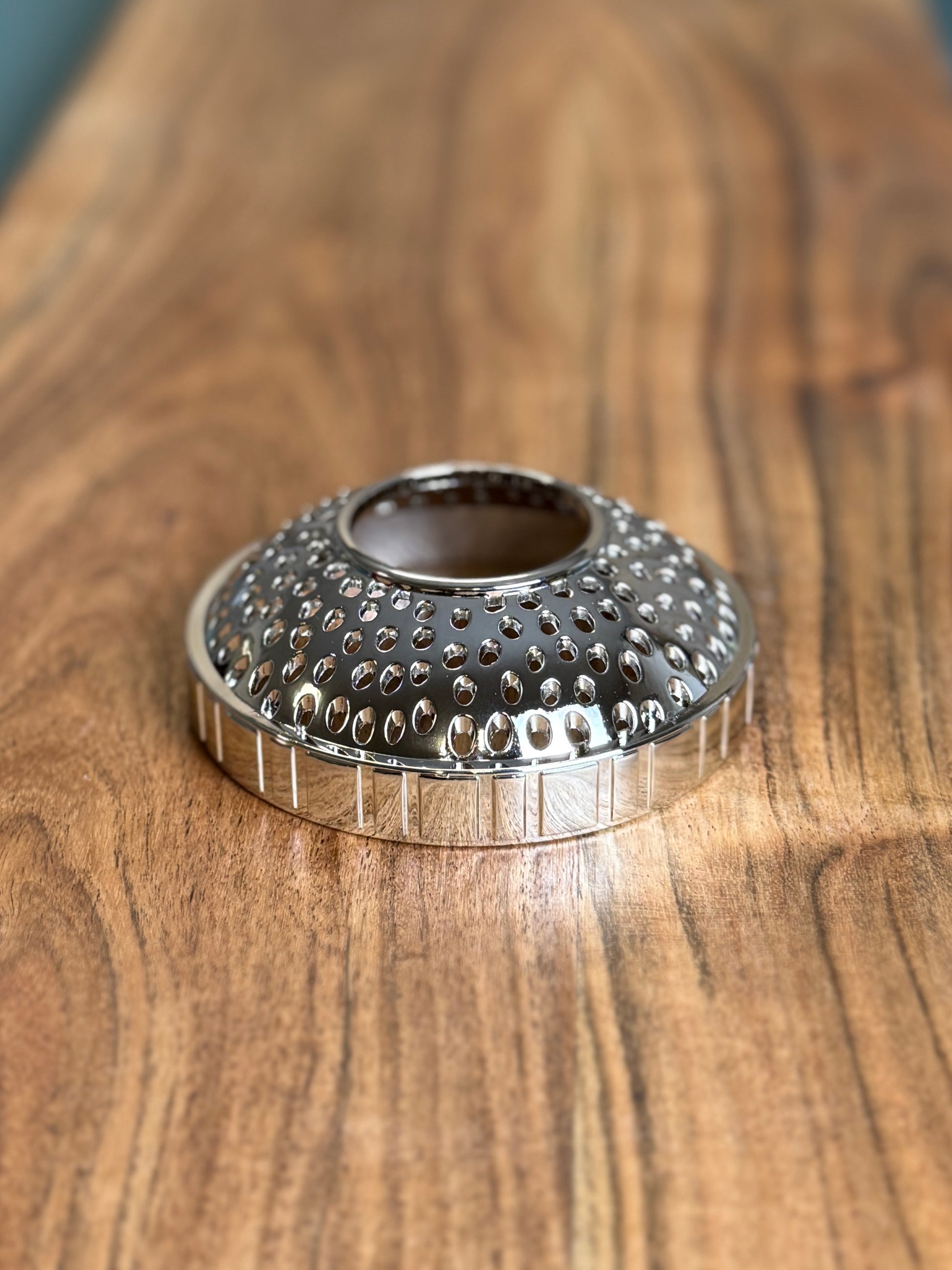 Durchmesser 8 cm, passend für mittelgroße Kerzengläser – unter anderem kompatibel mit allen Duftkerzen aus dem Soulyful Sortiment. Material: Metall, hochglanzpoliert in Silber.