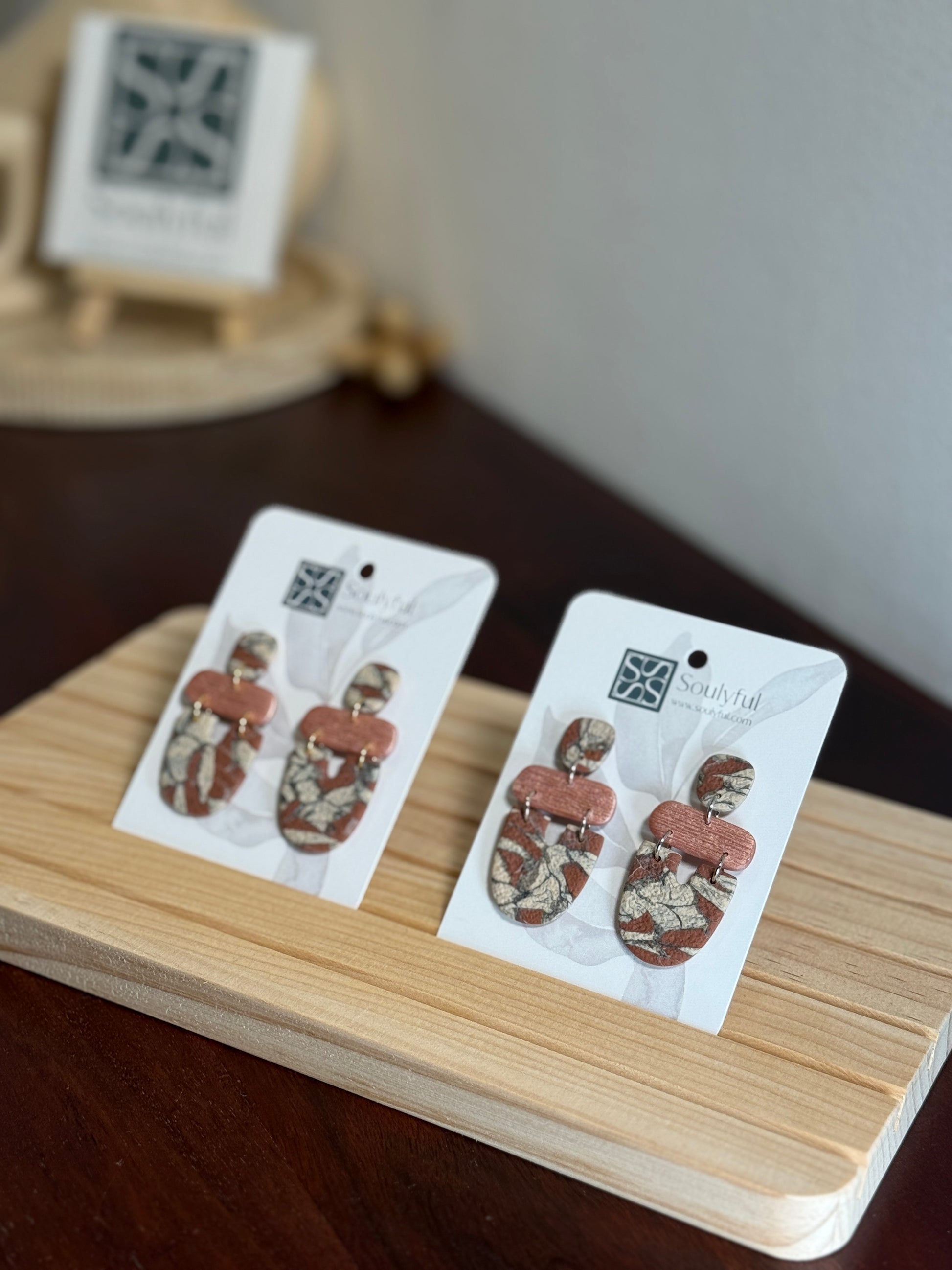 Warme Erdtöne, zarter Schimmer und eine Oberfläche, die an Naturstein erinnert – die Terra Gleam Ohrringe vereinen organische Optik und Eleganz auf eine besondere Art, auf ganz Soulyful Art und Weise.